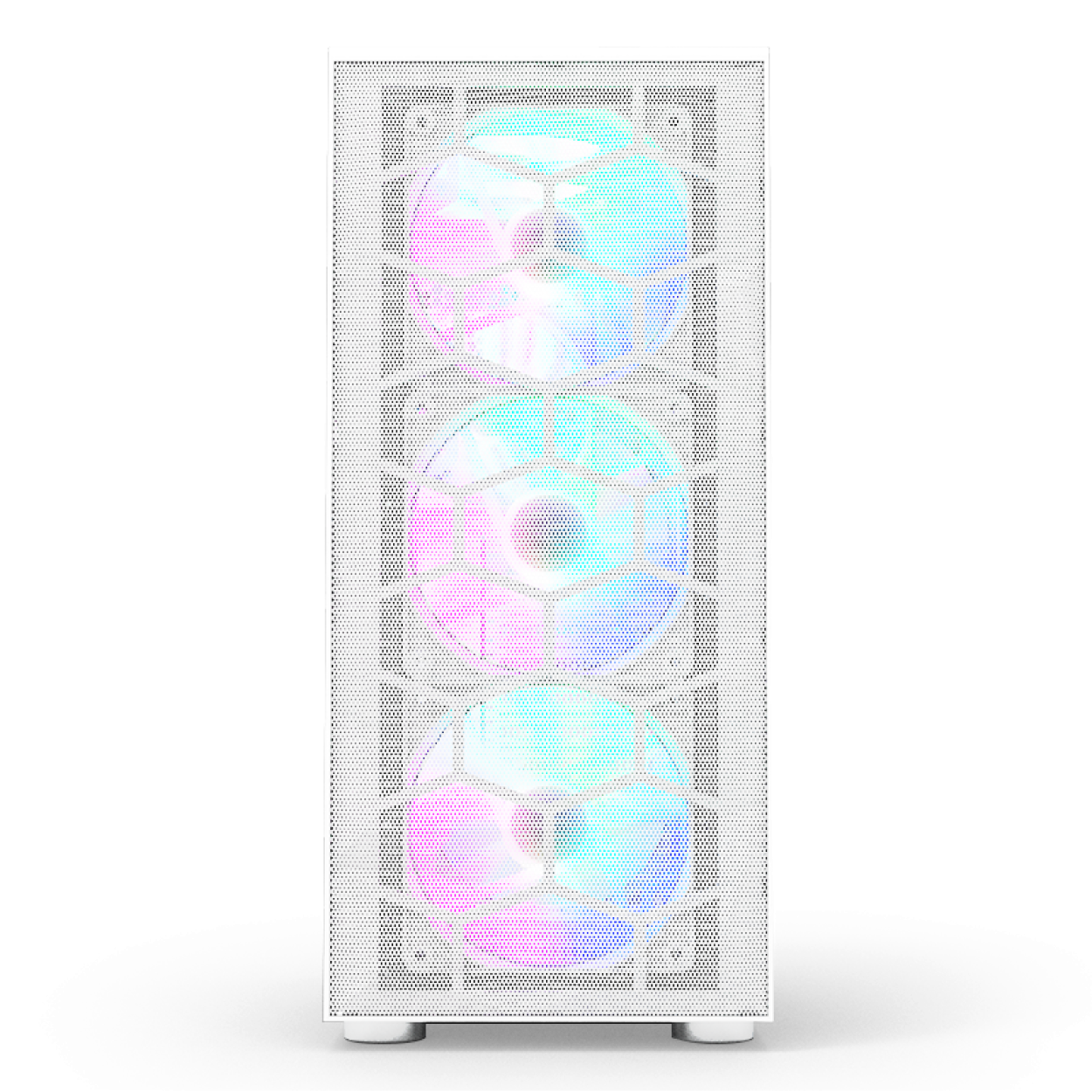De X3 Mesh-behuizing biedt een strak en functioneel ontwerp met een geoptimaliseerde luchtstroom. De mesh-structuur zorgt voor efficiënte koeling en stabiele prestaties tijdens intensief gebruik, waardoor de interne componenten koel blijven tijdens langere sessies.