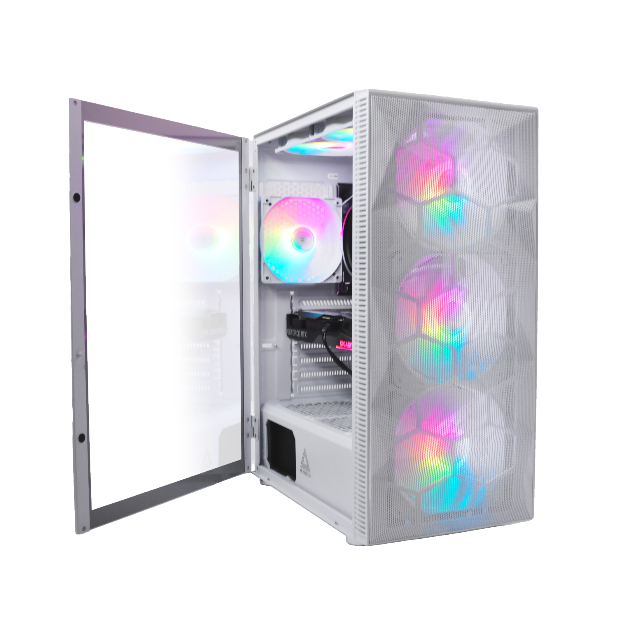 De X3 Mesh-behuizing heeft een strak en functioneel ontwerp met een geoptimaliseerde luchtstroom, wat zorgt voor een goede koeling tijdens intensieve gaming-sessies. De mesh-structuur verbetert de luchtcirculatie en zorgt ervoor dat de interne componenten koel blijven, zelfs tijdens langdurig gebruik.