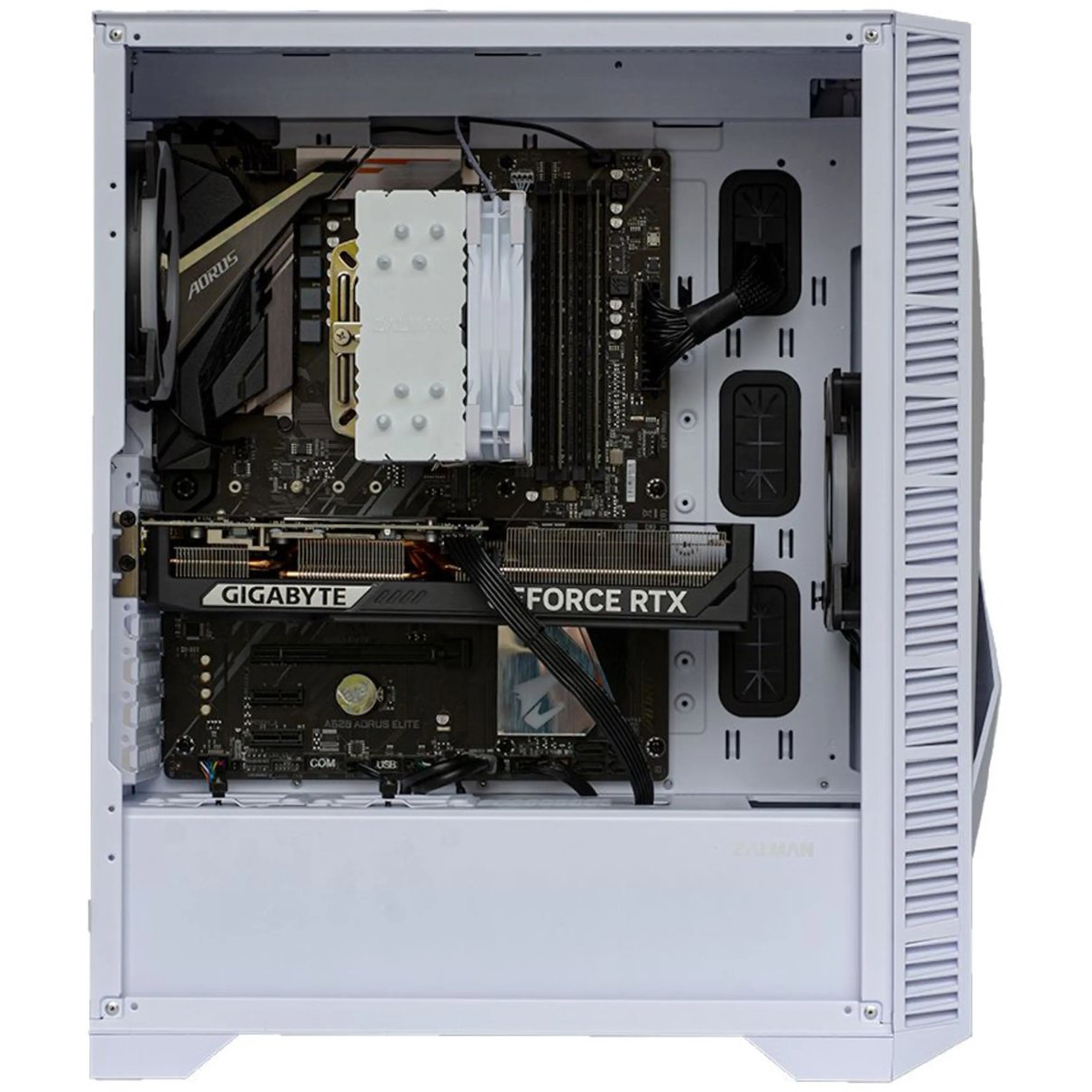 De computeronderdelen zijn professioneel ingebouwd in een Zalman Z3 Iceberg wit met RGB verlichting creëer je de ultieme look en game-ervaring. De doorkijkpanelen aan de zijkant zijn van gehard glas, dus geen goedkoop plastic dat snel beschadigd en stof aantrekt. Via het zijpaneel heb je een mooie kijk op de ingebouwde hardware. Dan zie je de RGB fans en het goede kabelmanagement dat zorgt voor een optimale luchtstroom in de GamePC dat de levensduur van de hardware zeker ten goede zal komen!